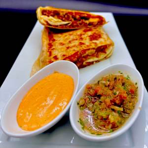 Served with 2 hard-boiled eggs, salsa, pickles, tahini, jalapeño salsa, and mango salsa.